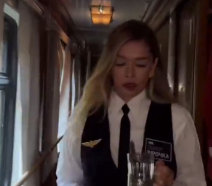 Вера Брежнева продемонстрировала свою новую роль, встречая пассажиров с чаем в подстаканниках и провожая их по вагону. Снимки, которые она опубликовала в In показывают ее в стильном наряде, который сочетает элементы классической проводницы с модными акцентами
