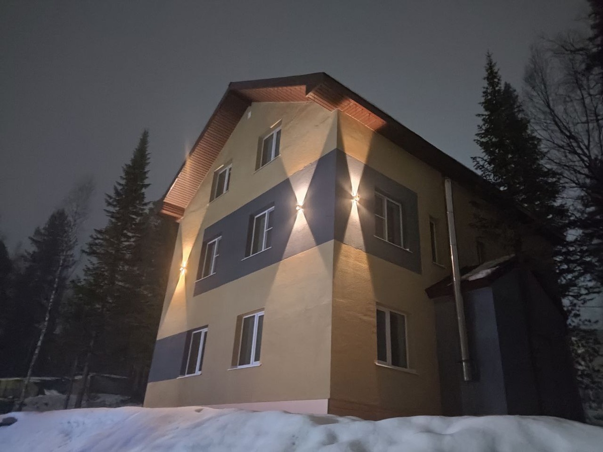 Выбор фасадных светильников длился не меньше недели. Первый взятый на пробу не подошёл. Был очень яркий и высвечивал мельчайшие неровности стены. Снова долгий поиск, размышления. Снова эксперимент. И удача. Второй светильник подошёл. Хотя не очень в это верилось. Заказали. Через время все светильники пришли. Проверили. Все живые. На улице ледок после дождя. Светильники высоко, стремянки не хватает. Пришлось использовать строительные леса и на них ставить стремянку. Первый удачно, при установке второго после того, как забрался на стремянку, она вдруг резко поехала вниз 😱 и через пару секунд я вместе с ней очутился на земле. Лёгкая боль в коленях, синяк. Но в целом мне повезло. Это, первое за всю стройку серьезное ЧП. Хорошо, что ни себе, ни дому, ни инструменту ничего не повредил. Сделал выводы, корректировки, продолжил монтаж светильников. Теперь всё прошло удачно. Все светильники на месте. Включаю - не горят. Снова по кругу - леса, стремянка.🤦♂ Все светильники проверил, подключено