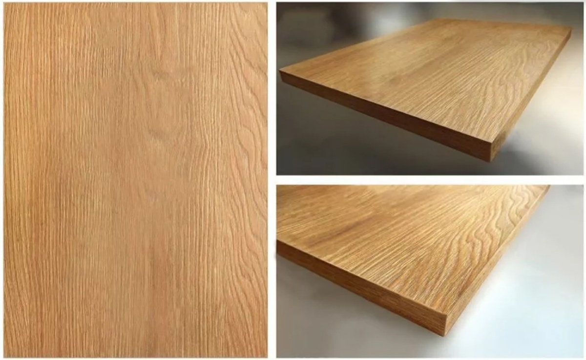 - Сверху укладывается бумага, обработанная меламином. Похожее вещество применяется в производстве технологичного HPL-пластика, востребованного не только в мебельном производстве, но и в других технологичных промышленных отраслях.