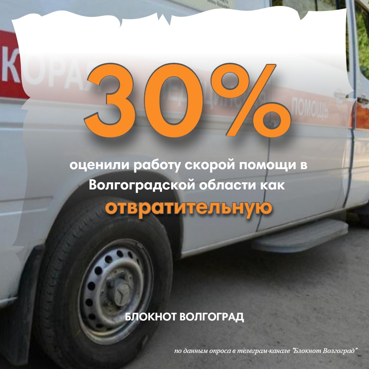 Треть опрошенных волгоградцев назвали «отвратительной» работу скорой помощи в регионе. Работу скорой оценили волгоградцы. В голосовании в телеграм-канале «Блокнота Волгограда» приняли участие более 2000 пользователей. 57% опрошенных считают, что проблемы в этой сфере есть, 30% называют работу скорых отвратительной и лишь у 13% нет ни единого нарекания. Тема работы скорой помощи традиционно является одной из самых острых в Волгоградской области. Обстановка накалилась в пик коронавируса, когда вызовов поступало столько, что бригад физически не хватало. Новая волна обсуждения СМП возникла после законопроекта «О Территориальной программе государственных гарантий бесплатного оказания гражданам медицинской помощи в Волгоградской области на 2025 год и на плановый период 2026 и 2027 годов», который направил в областную думу возглавляемый Анатолием Себелевым комитет здравоохранения Волгоградской области. В нем расписаны нормативы вызова скорой за счет бюджетных средств и ОМС на 2025 год. По ра