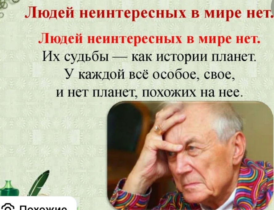 Всем здравствуйте!Да,я тоже считаю,что нет неинтересных людей.Даже если человек прожил обычную жизнь,все равно в ней было все свое!Свое детство,своя юность,своя первая любовь!Одним словом-у каждого своя жизнь и история.И каждому из нам есть,что рассказать.И,конечно,очень жаль,что мы до конца не знаем историю жизни даже своих близких родственников.Например,я.Мою родную бабушку по линии отца звали Екатериной,Катей.Мы жили очень далеко от нее.Да,ездили с отцом в отпуск к ней ,но не часто.Это был город Ковров Владимирской области.Бабушка жила в своем доме,с садом и огородом.И я хорошо помню,как перед сном нам,детям,бабушка всегда на ночь давала стакан горячего какао!О жизни самой бабушки я знаю очень мало,потому что была тогда маленькой и не спрашивала,а она как-то сама и не рассказывала.Я даже не знаю,откуда она была родом,но точно не из Коврова.Из детских воспоминаний помню,что она поселилась в Коврове из-за каких-то не очень приятных событий в ее жизни и быстро вышла замуж за деда Саш
