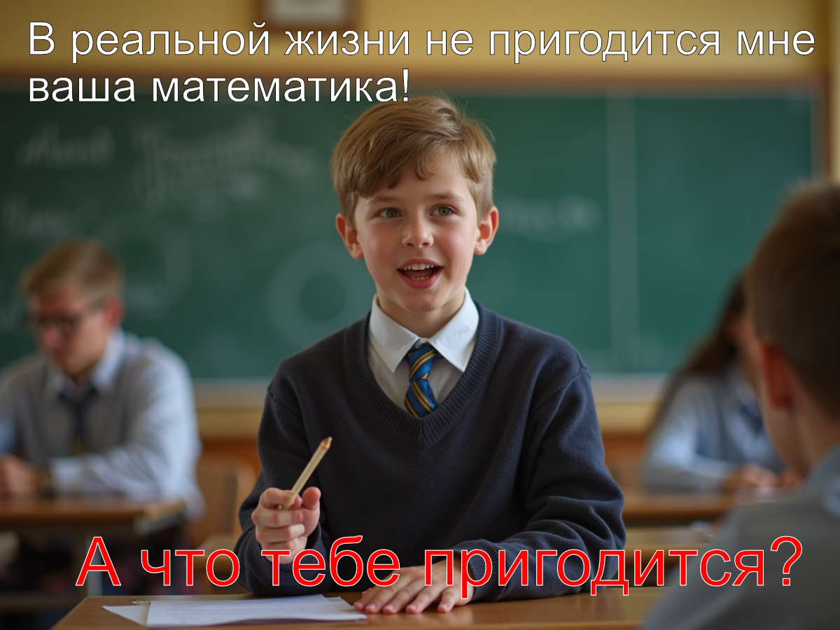 Второе. Чаще всего, когда человек говорит, что ему не пригодится математика, он примерно то же самое скажет и про литературу и про обществознание, и про химию