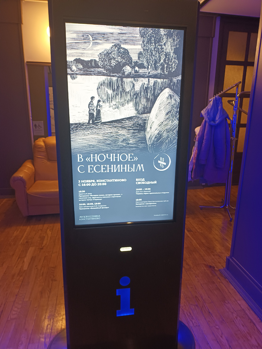 В праздники в России проходила ночь искусств. Можно было бесплатно посетить музеи и поучаствовать в мастер классах. Вроде бы эта история уже не нова, но почему бы не отправиться в ночное с музейщиками. Поехала на родину С.А. Есенина в музей-усадьбу «Константиново» . Уже была бесконечное количество раз. Обычно это прогулка, как в парке. Но ночью здесь была впервые. В Констатиново из Рязани по трассе ехать сорок километров, из подмосковсного Зарайска 60, поэтому ночь в музее решили перевести на вечер. Бесплатный вход в музей сделали с шестнадцати часов до восьми вечера. Впрочем на входе все равно всем раздавали бесплатные билеты. Вечерело. Ока охватывала синим холодом. Небо было хмурое. Как всегда свободно гулял ветер. На смотровой площадке поначалу никого не было, потом стали подтягиваться другие посетители. Да так, что в музейных экспозициях стало тесно. В литературном отделе можно взглянуть на макет бывшего села Константиново. Таким каким его видел Сергей Есенин. Сегодня здесь не раз
