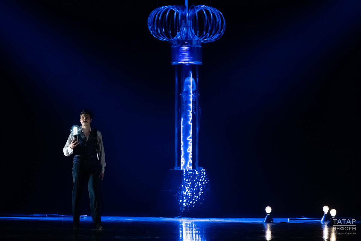Спектакль получился необычным, зрелищным и очень лаконичным – за 35 минут перед публикой вкратце разворачивается история сербского инженера, главной драмой которой становится ссора с его американским нанимателем Томасом Эдисоном, а главным действом всей жизни – роман с электричеством.