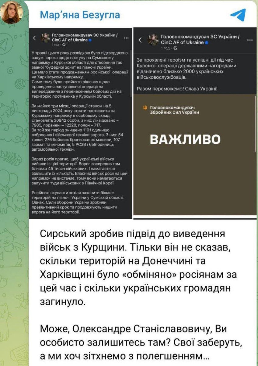 Главком ВСУ Сырский готовит вывод украинских войск из Курской области