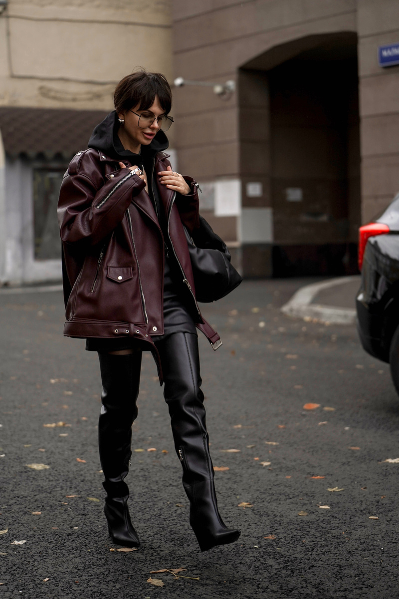 Конечно же, вы уже знаете, что тотал-луки из экокожи - одна из главных тенденций с осенне-зимних показов. И мне такая тенденция по душе. Ведь, что может быть комфортнее, чем непродуваемая гладкая экокожа в холод? А при правильном сочетании верха и низа, получится невероятно смелый, дерзкий и крутой образ. Такой тотал-лук — это настоящий тренд этого сезона. ⠀ И, кстати, это тот случай, когда лук с подиумов с лёгкостью перекочевал прямиком в реальную жизнь! Кроме того, такие вещи отлично смотрятся не только в тотал-луках, но и легко сочетаются с трикотажем и денимом. Давайте же разберемся, что лучше всего взять из экокожи и какие изделия выбрать на эту осень и зиму. Бомбер из экокожи — еще один из самых горячих трендов этого сезона. Такой бомбер просто невероятно комфортный и еще и из-за своей формы он становится крутым акцентом в образе. И кстати, он классно смотрится даже с самыми повседневным комбинациями, как лонгслив и джинсы , или трикотажное платье и грубые ботинки. Тренч из э