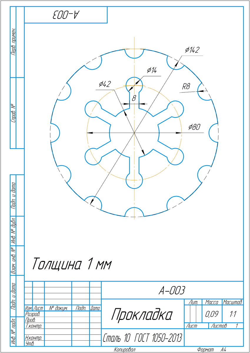 В этой статье мы продолжим моделировать простую деталь по чертежу с использованием программы Компас 3D. На примере прокладки, изображенной в чертеже, разберем основные этапы работы в Компасе. Перед тем как приступить к моделированию, полезно изучить чертеж детали. На изображении можно увидеть важные размеры, такие как: Эти данные помогут нам создать точную 3D-модель, соответствующую чертежу. Удалите лишние линии окружности и примените операцию Вырез Используйте команду Массив по окружности, чтобы скопировать это отверстие по окружности с равным шагом (всего 8 отверстий). Построим аналогичным образом отверстия по контуру прокладки окружностью с диаметром 16 мм. Используйте команду Массив по окружности, чтобы скопировать это отверстие по окружности с равным шагом (всего 12 отверстий). Поздравляю! Вы только что создали свою первую деталь по чертежу в Компас 3D. Эта практика поможет вам освоить основные инструменты моделирования и даст возможность применять их на практике. Моделировани