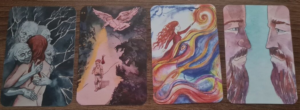 Далее покажу карты из колоды «Сила Рода». Первая карта имела абсолютно разную интерпретацию в консультациях. От «какая теплая, поддерживающая карта» до «какой ужас, ее держат в плену/ ме