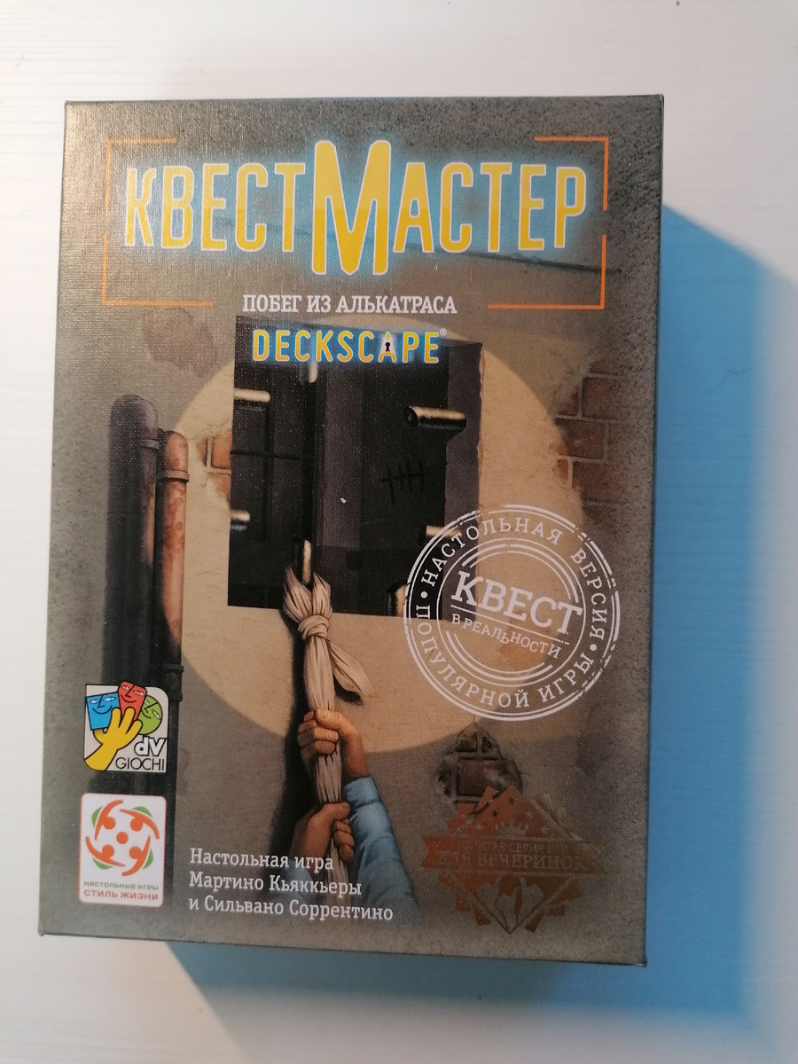 Издательство: Стиль жизни Кол-во игроков: 1-6 Возраст: 12+ Время: 60 мин Состав игры: колода из 64 карт, 1 тюремная газета Жанр: Квест в коробке Все игры серии - это настольные квесты. За определенное время игрокам нужно справиться с рядом головоломок. Найденная отгадка может служить подсказкой для следующей загадки. Задания-головоломки изображены на картах. Открывать их нужно в строго определенной последовательности, а переворачивать, только если есть соответствующие указания или вы уверены в ответе на загадку. Все головоломки этой серии мне помогает решать моя двенадцатилетняя дочь. Загадки были разные по сложности. Понравилась идея с газетой, в которой можно поискать подсказки. Так же были карты с заключенными, если решаешь головоломку - заключенный спасен. Мы не спасли лишь одного.. Это седьмая игра серии. Мы просыпаемся в темной холодной тюремной камере Алькатраса. За окном дождь, гром и молния. Как мы здесь оказались? Что произошло? Интересный квест. Нам понравился. В конце нам д