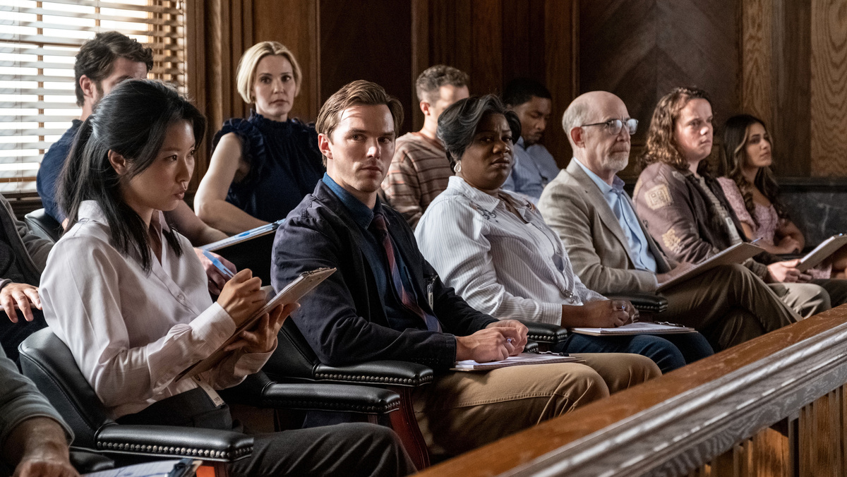 Другие присяжные охарактеризованы лаконично, одной-двумя чертами: больше всех хочет домой, водит автобус, любит тру-крайм-подкасты. Исключения — персонаж Седрика Ярбро, который с особенным рвением пытается отправить подсудимого за решетку, и герой Дж. К. Симмонса, по обыкновению источающего житейскую мудрость, флорист с секретом. Мотивации присяжных и процесс принятия решений Иствуд показывает со скепсисом, граничащим с сатирой. Джастин, славный парень с непростой историей (Кифер Сазерленд мелькает в паре сцен в роли его спонсора из АА), поначалу выглядит единственным, кто принимает вопрос чужой жизни всерьез. Замечательный парадокс, разумеется, заключается в том, что помочь невиновному он может только в ущерб собственным интересам.