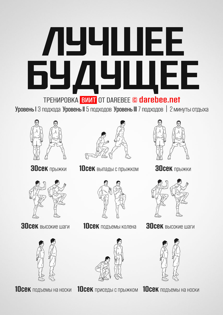Новый релиз /домашняя фитнес-тренировка — Лучшее будушее. Это бесплатная тренировка ВИИТ от Darebee для укрепления нижней части тела. ЦЕЛЬ: кардио ТИП: ВИИТ СЛОЖНОСТЬ: 2 — отлично для начинающих https://darebee.net/better-tomorrow-workout.html