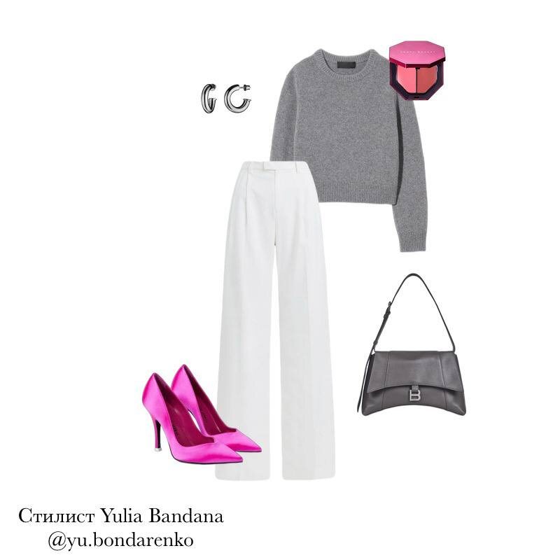 Перед вами, если не брать обувь в расчет, образ, собранный в цветах-ахроматах.