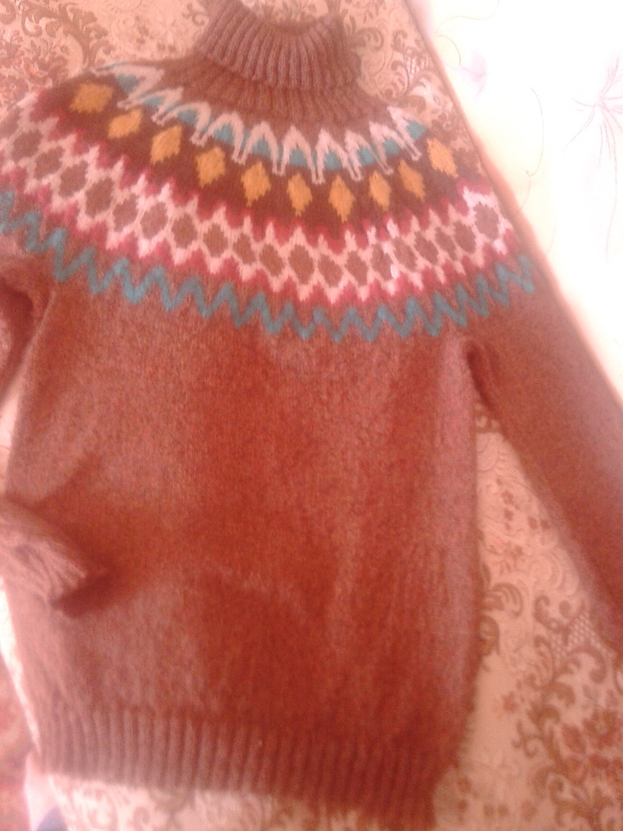 Джемперы такого типа, с обильной цветной кокеткой, помимо своей декоративной фукнции, где широкая кокетка, как палитра, позволяет самовыразиться творцу изделия, являются еще и возможностью получить действительно теплую функциональную вещь. Ведь при вязании узора с изнанки помимо основной нити проходит еще одна дополнительная нить. Вещи такого типа очень удобно вязать, для них нет необходимости даже регулировать высоту ростка, то есть, делать спинку несколько выше, чем линия переда. Число петель по мере расширения изделия, должно возрасти по сравнению с числом петель горловины раза в три. То есть, если их первоначально было 80, то к моменту разделения полотна на тушку и рукава, должно быть примерно 80*3=240, но не вполне 240, а 240-40. Почему? А потому, , что при вывязывании рукавов надо выполнять подрезы. Под каждым рукавом надо сделать расширение рукавов для подмышки, петель по пять у каждого рукава с двух сторон. А это 5*4. Но, помоно этого, подмышкой надо и у лицевой