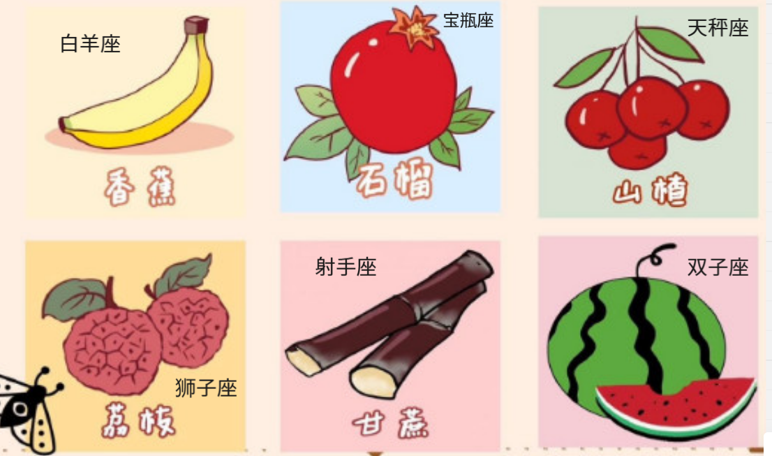 5. Стрельцы (射手座 shèshǒuzuò) сравниваются с сахарным тростником (甘蔗 gānzhe) (хотя это даже не фрукт, но все же :)