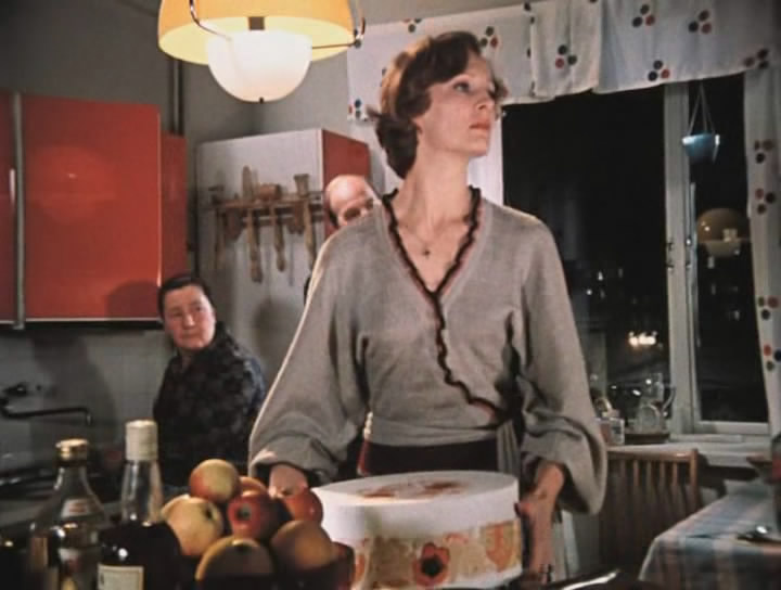 Кстати, на кухне мелькает еще один занятный тип - всего на пару секунд выглядывающий из-за спины жены Самохвалова. Он удивительно похож на Челентано. Что хотел этим сказать Рязанов? Что Самохваловы настолько хитросделанные, что к ним на вечеринку сам Челентано прилетел из Рима? ))))
