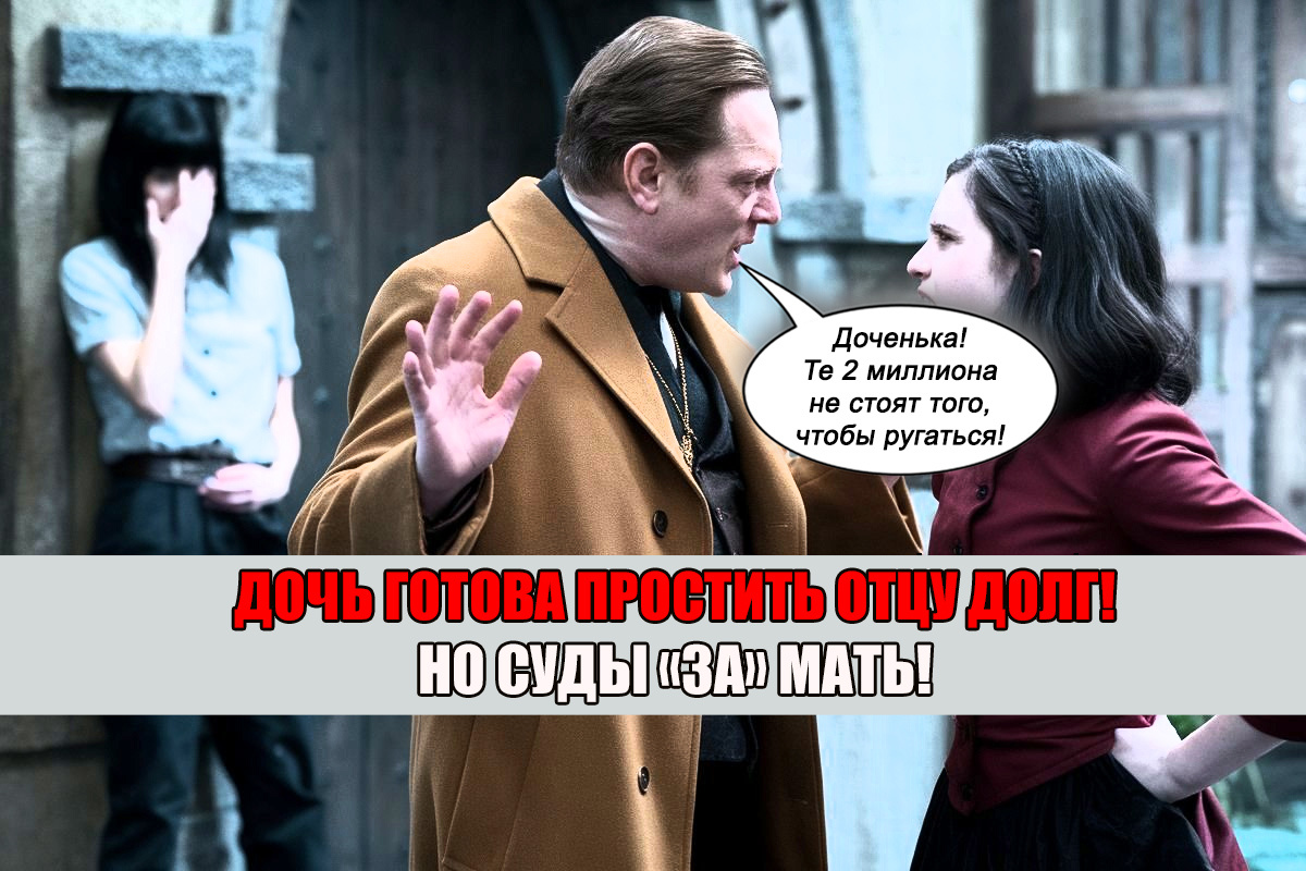 Есть еще одна отличная схема для разрешения данного конфликта. Если дочь так переживает за отца и его трудности во взаимоотношениях с ее матерью, то она может погасить задолженность самостоятельно.