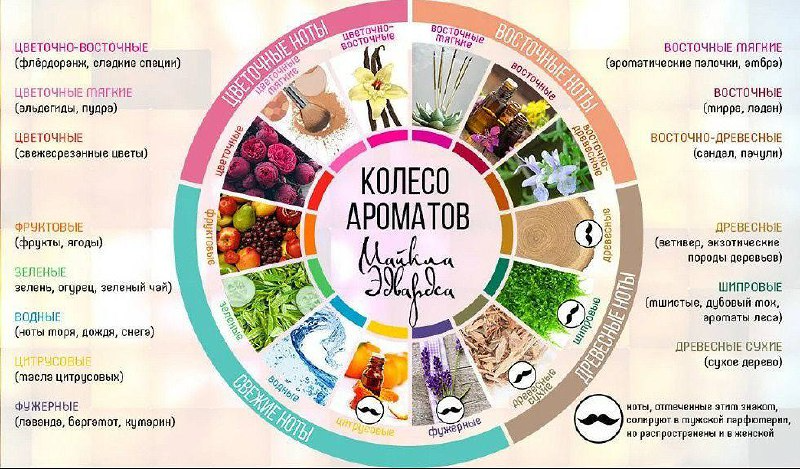 Сколько ароматов существует точно – никто не знает. Классификаций множество. Но вот эта, пожалуй, наиболее популярна и понятна. Ее придумал парфюмер Майкл Эдвардс в 1983 году. Он разделил все ароматы на 4 большие группы: восточные, древесные, свежие и цветочные. А внутри каждой группы выделил свои ароматы. Расскажу про наиболее популярные варианты. ЖЕНСКИЕ 112 — Lanvin Eclat 125 — D&G Light Blue 170 — Guerlain Aqua Allegoria Mandarine Basilic МУЖСКИЕ: 206 — Roja Dove Elysium 260 — Versace Pour Homme Versace УНИСЕКС 307 — Xerjoff Erba Pura 315 — Escentric Molecules Escentric 02 316 — Mango Skin Vilhelm Parfumerie 322 — Byredo Bal d'Afriue 323 — Escentric Molecules Molecule 01 + Mandarin ЖЕНСКИЕ 103 — Tom Ford Lost Cherry (вишня) 105 — Kilian Good girl gone Bad (персик) 127 — Dior J’adore (слива, персик) 133 — Lancome La Vie est Belle (персик, черная смородина) 143 — D&G L’Imperatrice (киви, абрикос, арбуз) 150 — Chanel Chance Eau Tendre (айва) 167 — Givenchy Ange ou Demon (клюква) 169