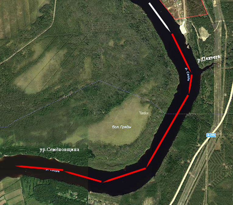 В предыдущей статье мы прошли по Свири от нижнего бьефа Нижне-Свирского гидроузла до южной границы посёлка Свирьстрой. Сегодня продолжим плавание вниз по течению. Длина сегодняшнего маршрута составит около 4 километров, рукотворных объектов мы не увидим – будет только природа. Взгляд с кормы на левый берег Свири в районе южной границы Свирьстроя. Маленький остров (на снимке справа) у левого берега, левее – полуостров. При понижении уровня воды островок может стать частью полуострова. Место впадения реки Пехтеги в Свирь. Пехтега – левый приток Свири, в 2011 году она выглядела как небольшой ручеёк. Расстояние до устья реки Пехтеги: от Москвы – 1105 км; от Самары – 2087 км; из нижнего бьефа Нижне-Свирского гидроузла – 3,3 км; время в пути – примерно 10-15 минут. В 2024 году устье Пехтеги выглядело совсем по-другому (что, кстати, хорошо видно и на карте). Снова взгляд назад, вверх по течению – это примерно середина сегодняшнего маршрута. Левый берег в осеннем наряде. Другой берег – другая