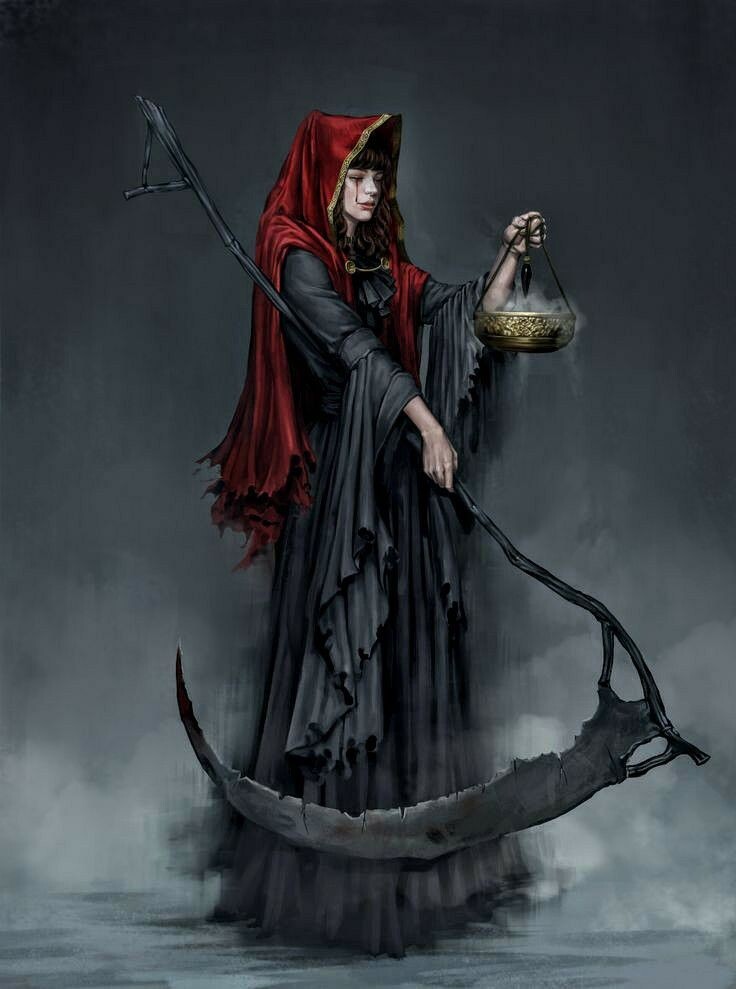 Тут же на моей шее появилось монисто, на пальцах кастет, а в руках огромная коса. Сверху кто-то спланировал и опустился передо мной. Белая тень превратилась в лысенького старичка с белой бородой и в белом халате.