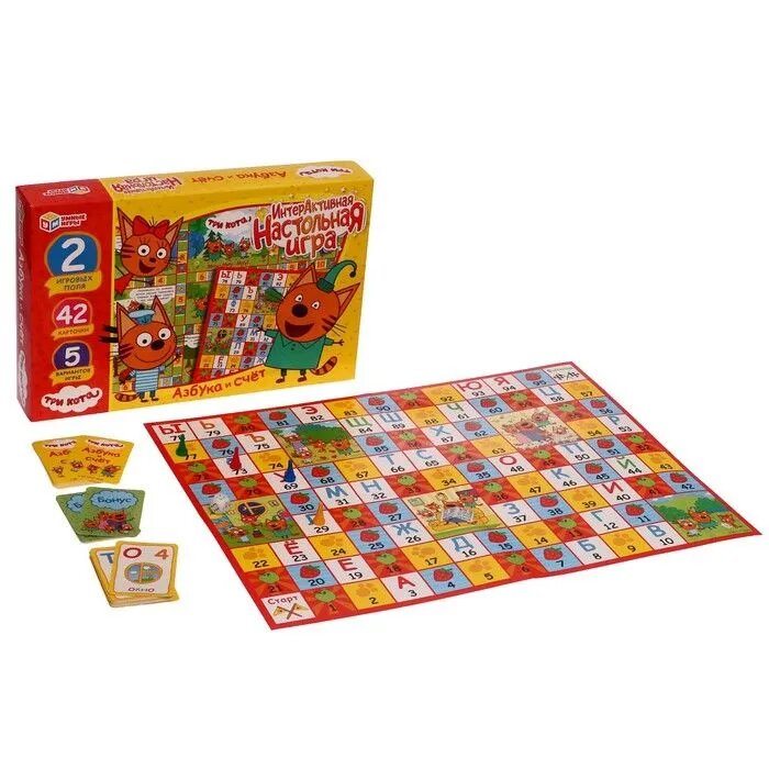 Обзор детской настольной игры "Три кота Азбука и счёт", Умные игры