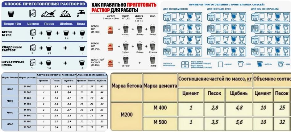 Для создания бетонного заливочного раствора необходимы будет следующие компоненты: вода, песок, цемент, щебенка. Данные строительные материалы можно приобрести в специальных магазинах. Изготовлять бетонную смесь необходимо по инструкции, а именно по соотношению компонентов 1:3:5. К примеру, 250 кг щебенки, 150 кг песка и 50 кг цемента смешать, а затем залить определенным количеством воды. Для одного куб. м. бетонного раствора нужно будет 0,68 куб. м. воды.