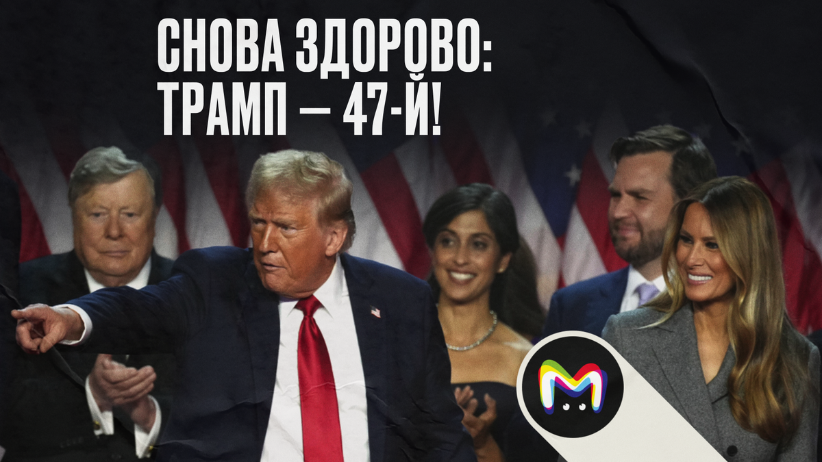 Ну что? Кажется, всё-таки Трамп. Прогнозы оказались верны, и ваше утро, как и наше, началось с новостей, мемов и поздравлений новому старому президенту США. О своей победе он объявил, выступая перед сторонниками в Палм-Бич, и назвал себя 47-м президентом США. Республиканец считает такой результат "политической победой, которой прежде не знала американская история". Новоиспечённого президента поздравили с победой Макрон, Нетаньяху, Орбан, Вучич, Зеленский и множество премьер-министров и президентов других стран. Дональд в свою очередь выступил с рядом громких заявлений и обещаний, которые мы уже слышали во время предвыборной гонки. Напоследок он станцевал под Y.M.C.A. группы Village People и покинул сцену под овации публики. Что именно сказал основоположник MAGA — читайте ниже. Вместе с Трампом на сцене стояла вся его семья и политические соратники. Среди них были напарник Джей Ди Вэнс, спикер палаты представителей Майк Джонсон и президент UFC Дэйна Уайт. Официальные результаты голосова