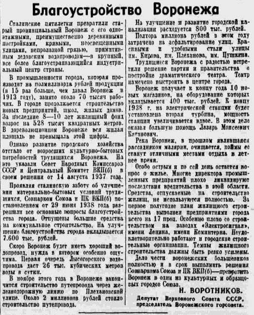 6 ноября 1938 года в Воронеже состоялось открытие автомобильного движения по путепроводу около площади Заставы. Этот мост существует и в наше время. К 21-й годовщине Великой Октябрьской социалистической революции власти возвели сооружение за рекордно короткий срок времени. На строительство путепровода ушло всего 7 месяцев. Потратили же власти на мост около 2 млн рублей. До того, как был открыт путепровод, воронежцы часами простаивали на железнодорожном переезде. Среди проезжавших от Заставы в сторону Задонского шоссе были рабочие заводов имени Коминтерна, «Электросигнал». Чтобы трудящиеся не задерживались, было решено построить автомобильный мост. - В ноябре этого года заканчивается строительство путепровода через железнодорожную линию по Плехановской улице. Около 2 миллионов рублей стоило строительство путепровода, - отмечал в то время в газете «Правда» глава Воронежского городского Совета Воротников. В том же самом 1938 году в столице Черноземья открывались и другие объекты инфрастру