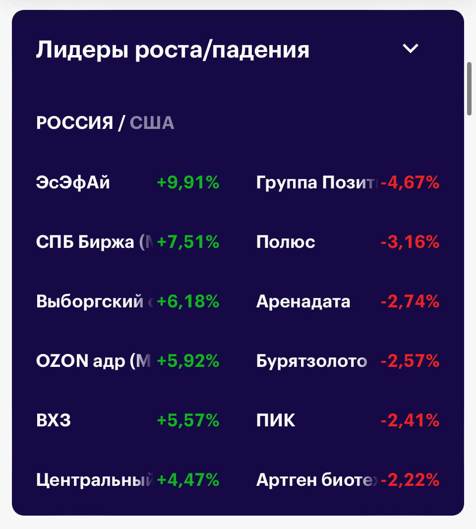 Всем привет! По итогам основной сессии 6 ноября индекс Московской биржи прибавил почти 2%. Хотя в моменте рос более, чем на 3%. Еще ни одни выборы в России не влияли на российский фондовый рынок так, как выборы в США, где побеждал Дональд Трамп. Наш "Дональд Иванович"! Нефть торгуется около 75 дол/бар. Доллар выше 98 рублей, а вот евро на сегодняшних новостях пошло в коррекцию. Минфин не смог разместить сегодня флоатеры, но немного ОФЗ с фиксированным купоном в итоге продалось. Аналитики Сбера представили свой топ дивидендных бумаг: Мосбиржа на следующей неделе планирует прекратить торги акциями Росбанка в связи с его присоединением к Т-Банку. Совет директоров SFI рекомендовал неожиданно высокие дивиденды - увеличив в 2 раза свою же недавнюю рекомендацию: Продал утром подарочные акции Роснефти, которые получил за открытие брокерского счета в Т-инвестициях в сентябре. Во-время их не скинул, а потом рынок ушел в коррекцию. Решил, что сегодня на волне позитива самое время "сдать". Вмест