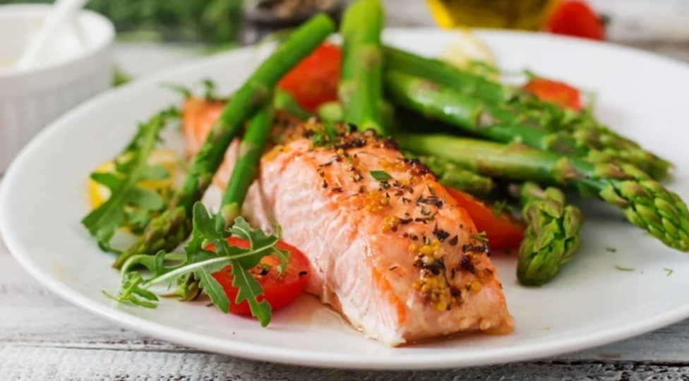 Рыба, которая принесет пользу твоему организму! Стейк лосося со спаржей — невероятно вкусное и весьма полезное блюдо для людей, которые следят за своим питанием и ведут здоровый образ жизни. Взяв за основу данный рецепт, можно импровизировать с его ингредиентами. Так, в качестве подушки из спаржи можно добавить кусочки тыквы, сладкого перца или томатов. 👍 Ингредиенты: Лосось филе - 2 шт (по 150-200 гр) Спаржа - 200 гр Лимон - 1 шт Масло оливковое - 2 ст.л Чеснок - 2 зубчика Соль и перец по вкусу Свежая зелень (петрушка или укроп) для украшения Приготовление: 1) Подготовка ингредиентов: - Разогрейте духовку до 200°C. - Промыть филе лосося под холодной водой и обсушите бумажным полотенцем. - Удалите жесткие кончики спаржи. 2) Приготовление овощей: - В миске смешайте спаржу с 1 столовой ложкой оливкового масла, солью и перцем. Убедитесь, что спаржа хорошо покрыта маслом. 3) Подготовка лосося: - В другой миске смешайте оставшуюся столовую ложку оливкового масла, измель