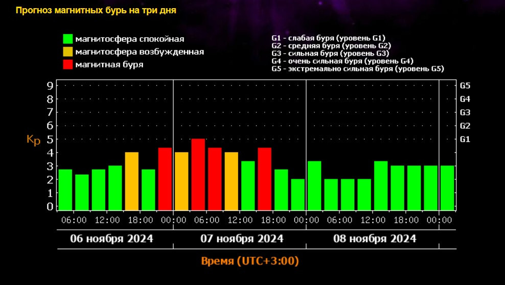 6 ноября на Солнце была зарегистрирована вспышка высшего балла. Максимум излучения зарегистрирован в 16:40 по московскому времени. "В настоящее время существуют риски ещё более крупных вспышек в ближайшие сутки-двое", - сообщает официальный сайт Лаборатории солнечной астрономии ИКИ и ИСЗФ. По прогнозу специалистов лаборатории, в ночь на 7 ноября на Земле ожидается магнитная буря уровня G1 (то есть слабая буря). Судя по графику, она начнется около полуночи и будет продолжаться до вечера 7 ноября. Только завтра, после 18:00, магнитосфера успокоится.