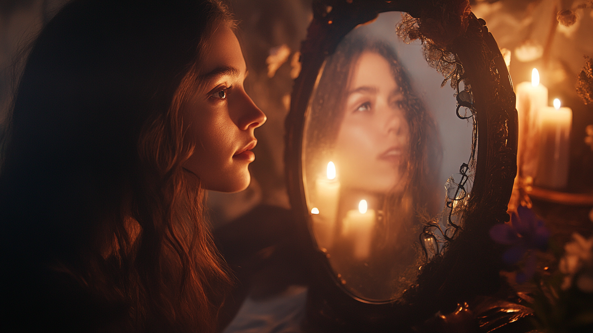 - Создай священное пространство: Найди тихое место, зажги свечу и поставь зеркало так, чтобы видеть свое лицо.