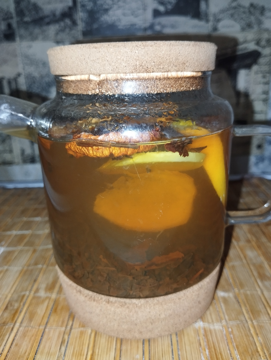 Поздней осенью, после прогулки, хочется согреться. Для этого заварим чай с мёдом, лимоном, имбирем и яблочными фрипсами. Мед придает чаю приятную сладость и делает его еще более ароматным. Кроме того, мед известен своими антимикробными и противовоспалительными свойствами, что делает его отличным компаньоном для чая. Берем любой крупно листовой чай, ваш любимый. Добавляем мед, сушеное яблоко, лимон и имбирь. Заливаем горячим кипятком, настаиваем 15 минут. Ароматный, согревающий и очень приятный на вкус чай готов. Приятного чаепития, друзья! 🍵