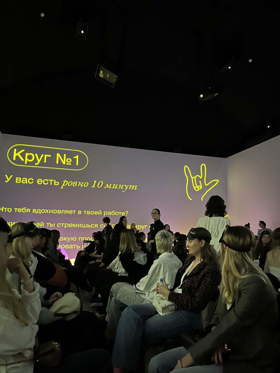 Недавно была на мероприятии с необычным форматом нетворкинга — блайнд-дейт Команда PR-агентства Rassvet.digital собрала 100+ клиентов и друзей проекта в одном пространстве и познакомила всех вслепую! Все участники сели на стулья, получили маски для сна и начали общаться с незнакомцем напротив. Это мог быть любой — от коллеги по цеху до фаундера агентства Правила: Класный поинт: узнать друг друга личностями, а не по профессиональным ролям. После 10 минут маски снимаются, и можно увидеть собеседника, познакомиться и обменяться контактами и так 3 круга. После был нетворкинг "при свете" Очень классный ивент, который дает возможность общения "без маски" и формат которого попробую реализовать в своих проектах Отдельное спасибо агентству Rassvet.digital за глубокий смысл и приглашение Но нетворкинг это не единственный момент мероприятия, в темноте проходили и лекции
