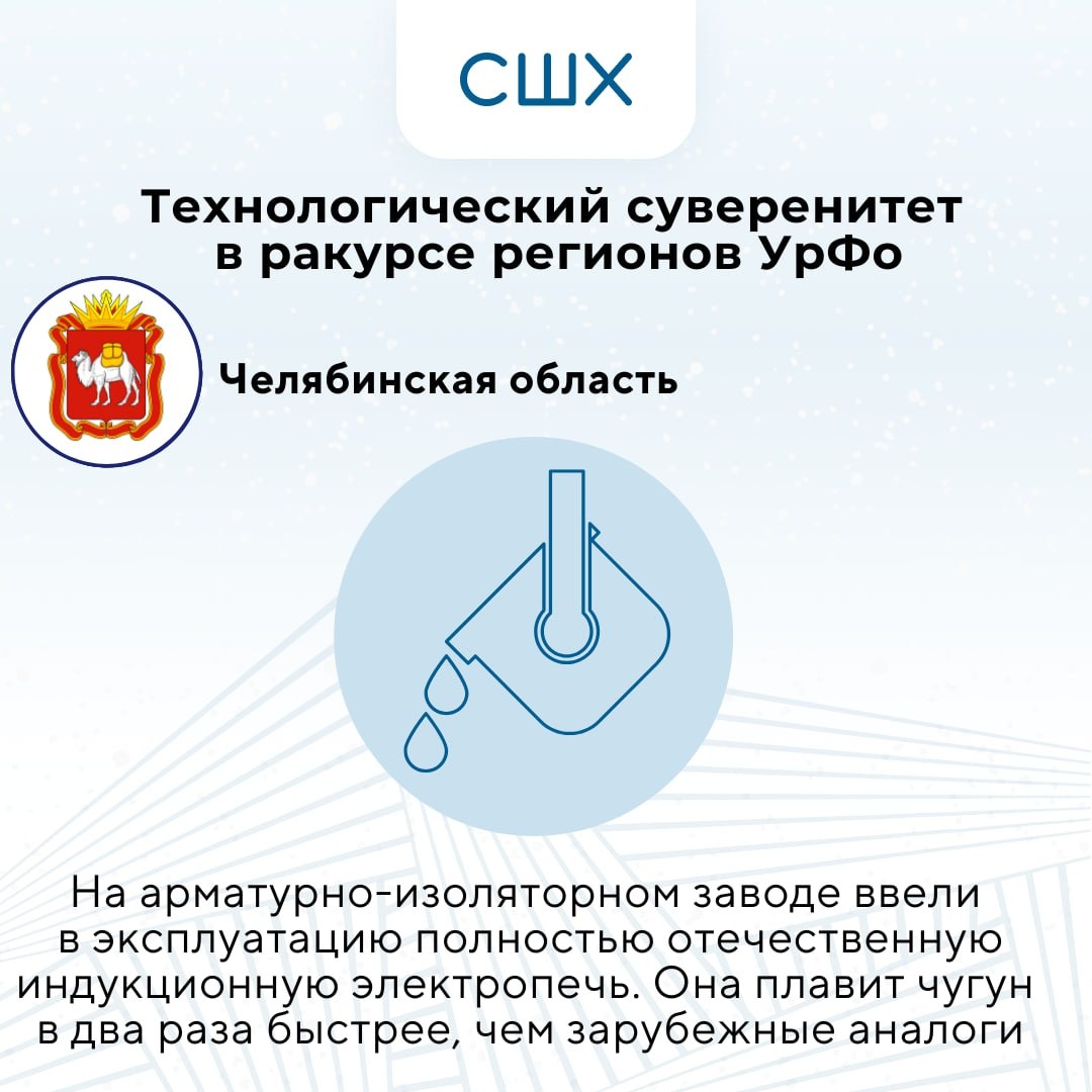 В Челябинской области на арматурно-изоляторном заводе ввели в эксплуатацию полностью отечественную индукционную электропечь. Она плавит чугун в два раза быстрее, чем зарубежные аналоги. Главное преимущество — возможность полного слива металла из тигля, что ускоряет сплав, а также ниже загрязнение воздуха. В Южном Урале запустили отечественную клиническую информационную систему для новорожденных. Система предназначена для реанимации и интенсивной терапии младенцев. Считается, что она поможет стандартизировать и оптимизировать работу врачей и медсестер. В Курганской области продолжают открывать высокотехнологичное импортозамещающее производство. На прошлой неделе запустили два цеха, где будут выпускать элементы трансмиссии для отечественных вездеходов. В планах — закрыть потребность сначала Урала, а потом и всей страны. В Тюменской области провели международную научную конференцию, посвященную катализаторам и реакторам, а также производству водорода. Вместе с учеными из 11 регионов и 5 с