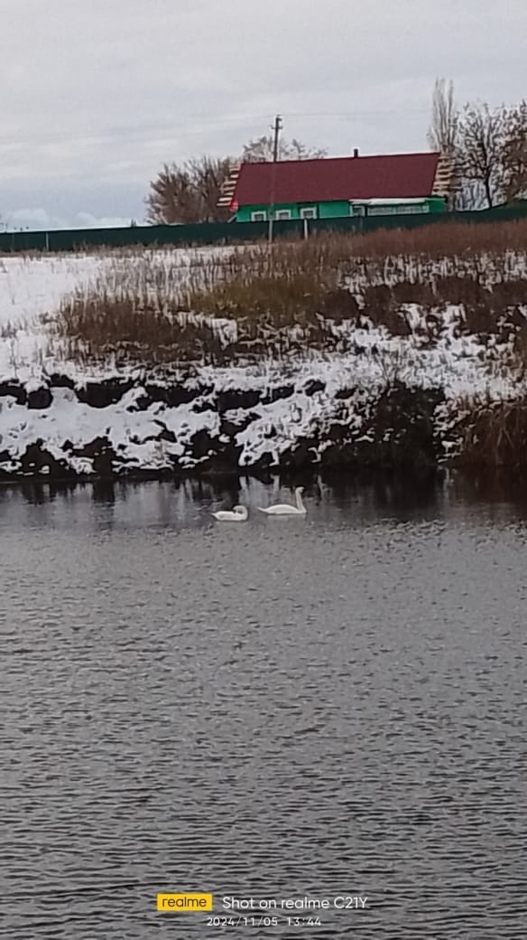 Двух лебедей заметили в водоеме в селе Алое Поле (Панинский район). Как сообщают очевидны, птицы не могут улететь уже две недели.