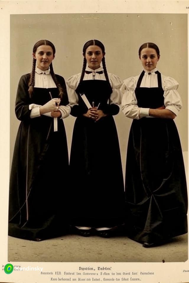 Мы стояли в гимназистских черных шерстяных платьях с передниками и уложенными в кольца на голове косами. Выглядели мы как копии с фотографий нашего выпускного альбома, только в старинной версии.
