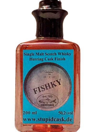 Дата розлива: 01.03.2007 Наверняка многие слышали, но всё равно не верили. Негоциант stupidcask.de прикупил бочку Bruichalldich на винокурне и финишировал её же 3 месяца в бочке из-под солёной селёдки. Изначально это была бурбоновая бочка, уже имевшая 4-летний хересный финиш. По всей вероятности, немцы попробовали проверить те легенды, которые ходили вокруг Pulteney Distillery и некоторых портовых винокурен. Дескать, в местах активной торговли селёдкой в качестве транспортной тары для виски вполне могли использоваться бочки из-под селёдки, а не из-под хереса. А ведь изначально бочки как раз только в качестве транспортной тары и использовались, акт об обязательной выдержке виски в бочках вышел лишь в 1915 году! Что же получилось у пытливых новаторов из Германии? А получился FISHKY - слово образованное от слов FISH (рыба) и WHISKY. Тот кто поставил 30 баллов из 100 пишет, что