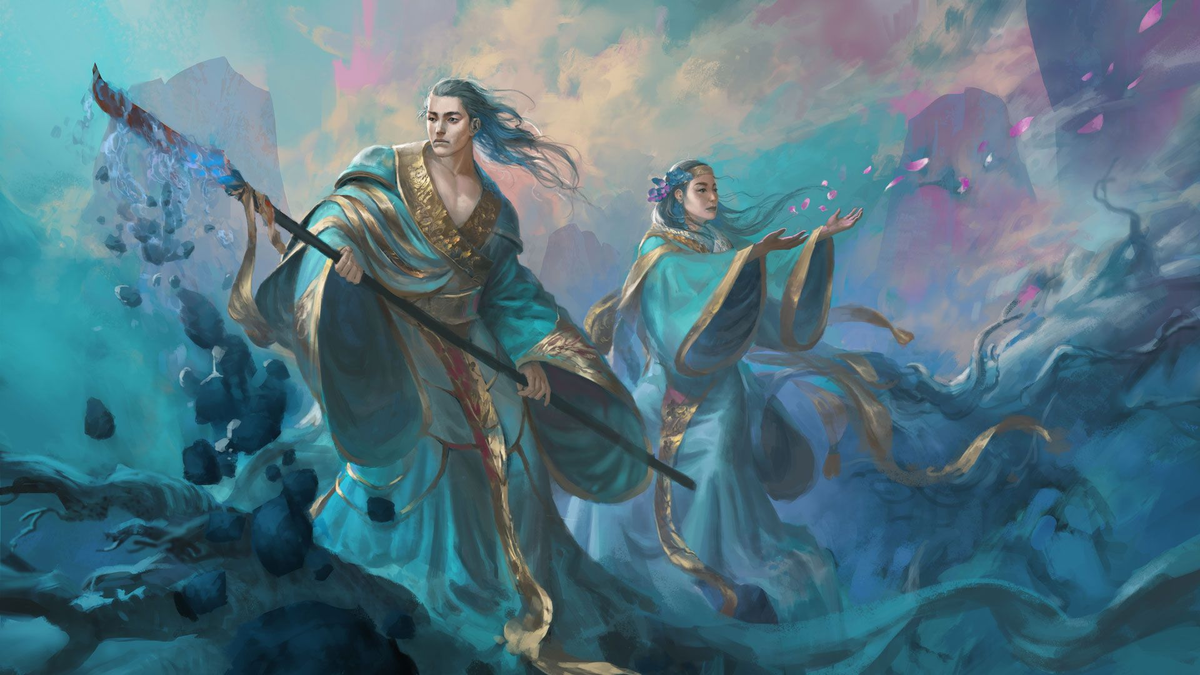 Идзанаги и Идзанами играют центральные роли в японской мифологии, особенно Идзанаги, который олицетворяет творение, жизнь и цикл смерти и возрождения. Среди богатого пантеона божеств Японии Идзанаги почитается как выдающаяся фигура, воплощающая суть творения в синтоистской мифологии. Его повествование вращается вокруг тем творения, семьи и тонкого баланса между жизнью и смертью. Изображения Идзанаги различаются, но обычно его изображают как красивую и сильную мужскую фигуру. Некоторые изображения показывают его с Амэ-но-Нубоко, небесным драгоценным копьем, символизирующим его участие в создании первозданных морей. Обычно Идзанаги изображают как благородную и крепкую фигуру, воплощающую мужественность и жизненную силу с его царственным присутствием и длинными струящимися волосами. Одетый в традиционную японскую одежду, он обозначает свой божественный статус. Амэ-но-Нубоко, или «Небесное драгоценное копье», является заметной чертой в его иконографии, представляя его власть и роль в созда