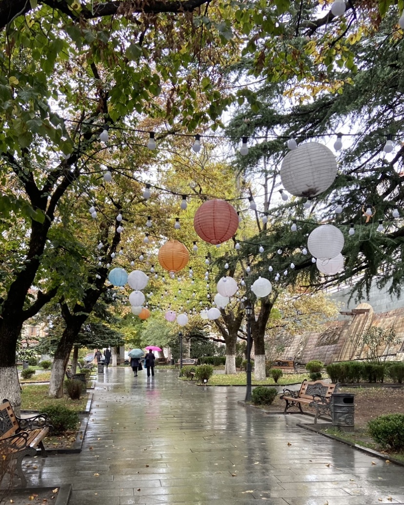 Городок красивый. Наша экскурсия проходила около мемориальной стены, где имена всех грузин, погибших во второй мировой.