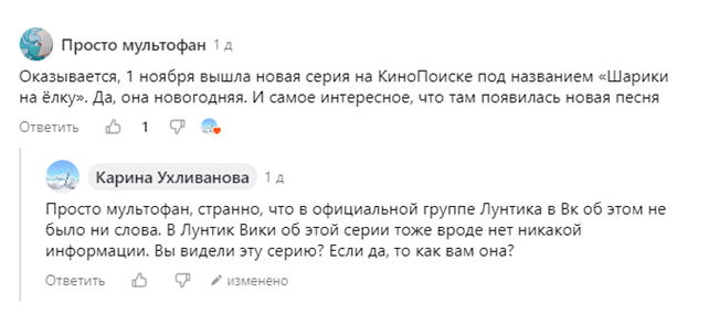 Всем привет Наверняка вы задавались вопросом, почему не выходят новые серии Лунтика. Вот ответ - новая серия вышла, но ни в группе VK, ни на Лунтик Wiki эта серия не распространялась. Я тоже о ней не знал, пока не увидел этот комментарий под статьей Карины Ухливановой: И я нашёл её в свободном доступе! Вот ссылка. А мы начинаем обзор. Поехали. По сюжету, Лунтик и Кузя разбивают ёлочные игрушки. Казалось бы, Новый Год испорчен. Внезапно Лунтик вспоминает историю из серии "Разбитая ваза" и говорит, что Шнюк наверняка сделает ёлочные игрушки. Но не тут-то было: дядя Шнюк не умеет делать ёлочные игрушки, но советует прийти к раку Чикибряку за жемчужинами. К компании из Лунтика и Кузи присоединяется Луна. Но и тут проблема - дети не могут докричаться до Чикибряка. К счастью, пришёл Корней Корнеевич за водорослями для салата. Он просверлил отверстие, в которое прыгнули Лунтик и Луна (тоже мне, моржи тут нашлись). Но и тут проблема - рак Чикибряк спит, и не проснётся до конца зимы. Соответст