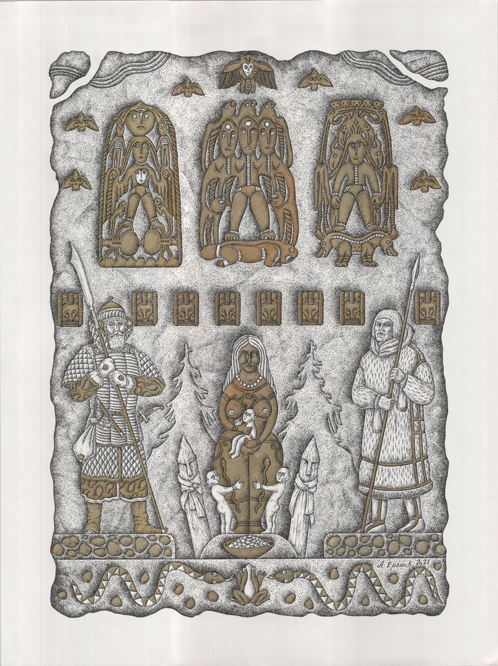 Золотая Баба,Богородица,Сорни Най, Юмала, Золотая Старуха, Калтась, Гуаньинь, Дьес Эмигет (Медная Статуя), Сорни Най (Золотая Владычица) , Сорни Эква (Золотая Женщина) , Злата Майя — вот сколько имен имел золотой идол, неизвестно откуда появившийся на капищах древней Биармии, Югры и Перми и неизвестно куда исчезнувший, как полагают, в конце XVI в.