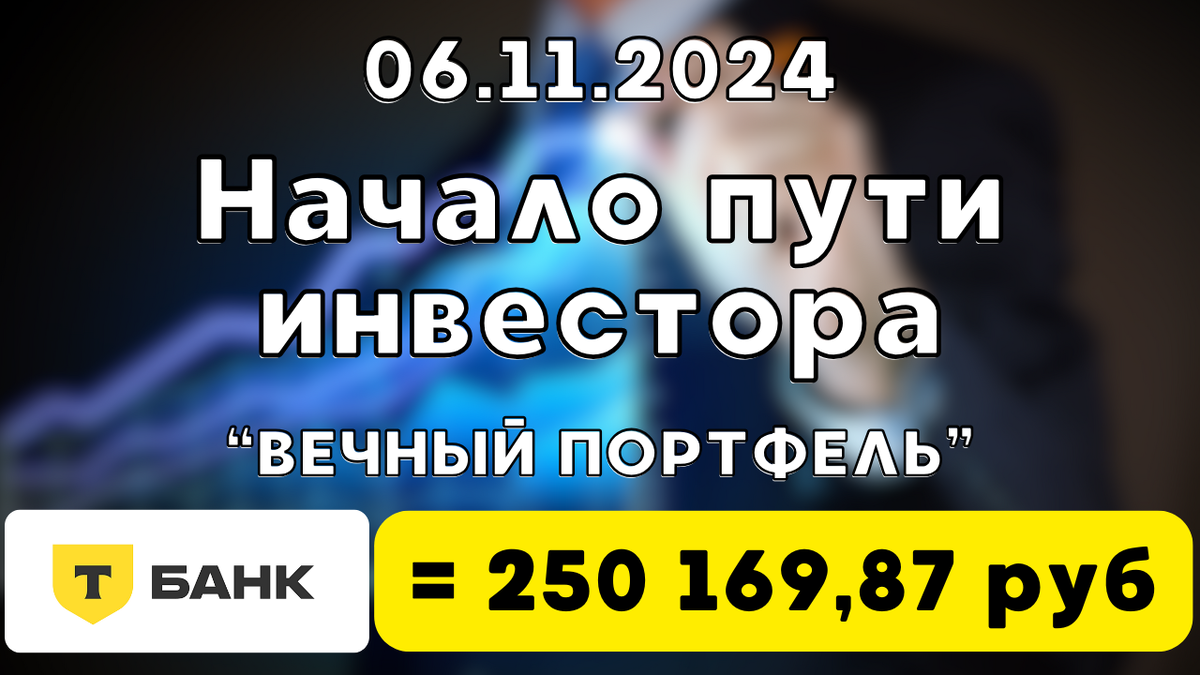 Меня зовут Николай, и сегодня я начинаю свой путь инвестора Т-Банк Инвестиции. Недавно меня вдохновил успех друга, который сумел собрать более 130 миллионов рублей в инвестициях. И вот теперь, с его поддержкой и стремлением к долгосрочным вложениям, я тоже решил попробовать свои силы в инвестициях. Конечно, вера в успех усиливается, когда у тебя есть опытный наставник. Честно скажу, что у меня пока немного опыта — всего несколько месяцев изучения фондового рынка. Я не планирую никого учить или продавать курсы, а предлагаю пройти этот путь вместе со мной, чтобы делиться успехами и, возможно, приумножать активы вместе. На данный момент мой портфель составляет 250 000 рублей. Вот его структура: • 100 000 руб — акции Сбербанка. Я верю в эту компанию и её стабильные дивиденды, а сейчас их акции заметно просели. • 50 000 руб — ETF “Вечный Портфель” от Т-Банка. Я выбрал его по рекомендации друга, ведь он зарекомендовал себя как сбалансированный портфель, и только один раз за всё время показы