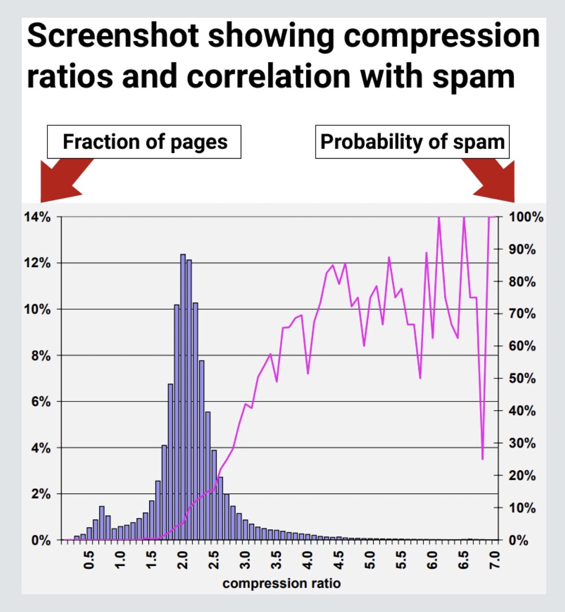Поисковые системы могут использовать "Коэффициенты сжатия", чтобы упростить идентификацию страниц низкого качества на большом масштабе. Недавно была отличная статья от Roger Montti, которая осталась в значительной степени незамеченной. Это наводит на мысль о том, что поисковые системы, такие как Google, могут использовать сжимаемость для вычисления вероятности того, что страница будет спамом. Сжатие является распространенной практикой в интернете. Идея заключается в том, что алгоритмы поисковых систем могут находить повторяющиеся слова и ненужный текст, чтобы уменьшить общий размер документа. В результате, окончательный сжатый документ будет урезанной версией оригинала, чтобы занимать меньше места. Аналог этому — «Сжатие файлов JS/CSS» — распространенная практика повышения скорости работы сайта. Концепция заключается в том, что поисковые системы могут использовать сжимаемость в качестве определяющего фактора качества контента. Чем больше ваша страница может быть сжата, тем больше вероя
