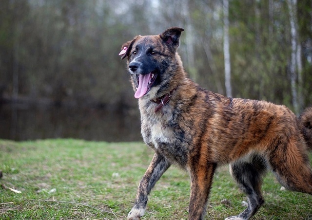 Мишка необычного тигрового окраса, мягкий на ощупь, нежный в душе. Дружелюбный, игривый, как и все дети, ласковый. Легко идëт на контакт, очень любит детей. С удовольствием активно погуляет, поваляется на травке, поиграет, потом спокойно пойдëт рядом .