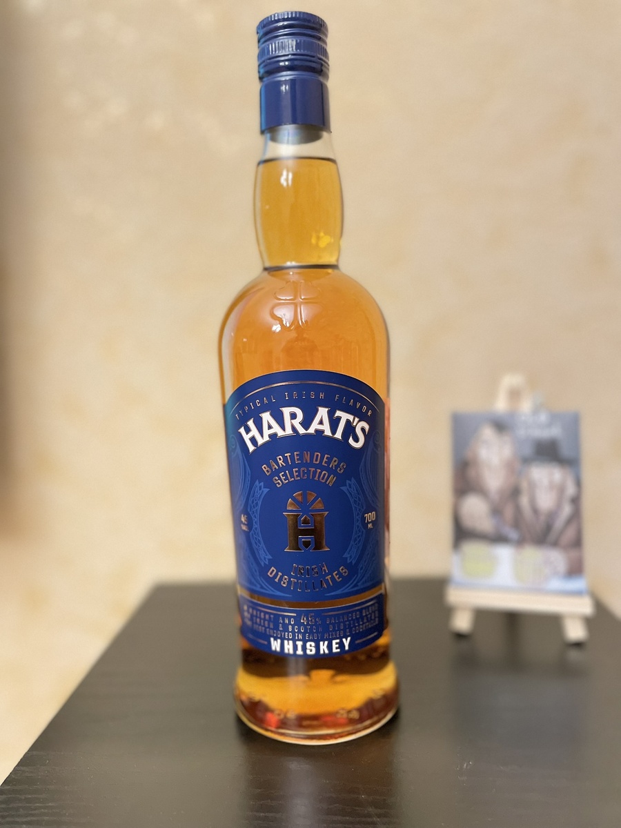 Когда я делал обзор базового виски Harat's, который сейчас можно найти практически в каждом магазине, я упомянул, что будет ещё один релиз, непосредственно для сети пабов Harat's, который будет сильно отличаться от базового. Первое, что сразу бросается в глаза, в этом релизе крепость составляет 45%abv, в отличие от 40%abv базового. Как вы понимаете, более высокая крепость может добавить яркости и полноты вкуса. Надо будет проверить, так ли этом в нашем случае. Вторым отличием является то, что здесь к основным ирландским компонентам добавлены шотландские. Понятно, что и это не совсем оригинальная тема, в начале 20-го века выходили виски, представляющие смесь ирландского и шотландского. Но это всё дела минувших дней. А мы сейчас попробуем современную практику. И этот виски создавался совместно с барменами популярной сети ирландских пабов. Так что, попробовать его обязательно надо, чтобы понять, что же в итоге получилось у компании Алкогольная Сибирская Группа. И вот бутылочка теперь у ме