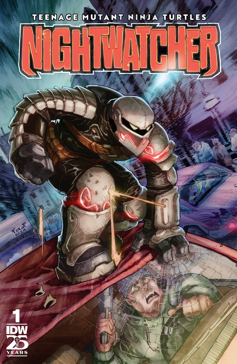 Когда дело касается расширения вселенной Черепашек, нет ничего невозможного, даже если это старый фильм, который полюбился лишь нескольким заядлым фанатам. Издательство IDW Publishing не собирается сбавлять темпы в расширении своей линейки комиксов о Черепашках-ниндзя в этом году, и продолжает это с выпуском «Черепашки-ниндзя: Ночной Страж» #1. Если вам кажется, что это название знакомо, вероятно, вы видели крайне недооцененный анимационный фильм TMNT 2007 года. В нем Рафаэль берет на себя бронированную личность Ночного Стража, чтобы защищать Нью-Йорк, и именно с этой идеи команда из Жуни Ба (не пропустите наше интервью с Ба!), Феро Пе, Луисом Антонио Дельгадо и Натаном Уидиком начинает свой рассказ — правда, с некоторыми изменениями. Для начала, Рафаэль сейчас не в доспехах Ночного Стража — он находится в тюрьме в рамках комикса «Черепашки-ниндзя» Джейсона Аарона и Джоэл Джонс. Я не стану раскрывать личность Ночного Стража, ведь это лучше оставить на усмотрение читателей, но это персо