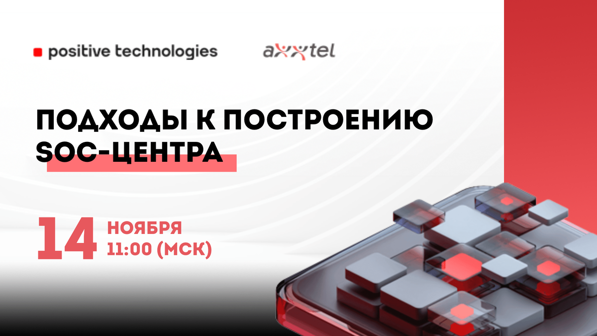 14 ноября в 11:00 Мск ВЕБИНАР "Как построить корпоративный SOC: план действий и практические рекомендации"