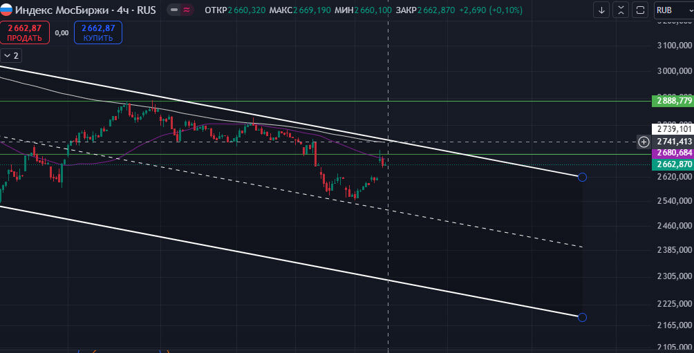 $IMOEX 🏛 По индексу Всё идёт по плану. 📈Вчера дошёл до промежуточного уровня 2697, ложно пробил, но не закрепился, поэтому откатил. 📉Под вечер на основной сессии начали падать дошли до 2650, но гэп не закрыли. 🕯Сейчас гэп не основная задача рынка, мы можем закрывать его подольше. Может дойти до Верхней стенки 2734, (я ранее тоже об этом писала). 📊Вчера было много вбросов информационных, то что я называю мусор, на этом фоне может быть отскок наверх, в любом случае после коррекции мы пойдём к среднему уровню примерно до 2511. 📉 Если уровень средний пробьёт - движение вниз продолжится до 2280. Я всё-таки предполагаю, что 2200 мы чиркнем в перспективе. ✅Надеюсь мои разборы помогают вам торговать, сейчас самый лучший вариант - это спекулятивная торговля, поэтому опирайтесь на новую стратегию. 💯 По вопросам обучения писать в личку, напомню что я даю полноценное обучение по работе на финансовых рынках. @vmils03 💥ТГ