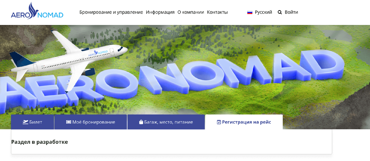 Aero Nomad является молодой частной авиакомпанией Кыргызстана, основана в 2021 году. Выполняет как внутренние, так и международные рейсы, но лишь в 4 страны: Пакистан, Турцию, Индию и Россию. Небольшие комфортабельные самолеты Airbus A320 французского производства вмещают до 180 пассажиров. Пройти регистрацию на рейс можно в аэропорту у стойки авиакомпании. Она откроется за 3 часа до отправления. И у пассажиров есть всего 2 часа, чтобы пройти ее. Чтобы избежать лишнего стресса, лучше пройти регистрацию онлайн через официальный сайт авиакомпании или сервис CheckinFly, где также можно выбрать место и дополнительные услуги для комфортного полета. На сегодня пассажиры не могут пройти регистрацию на сайте авиаперевозчика — раздел находится в разработке. Еще вы можете пройти регистрацию на международные рейсы через российскую платформу CheckinFly, которая принимает оплату за дополнительные услуги на время полета с российских карт. На данный момент платформа не может провести онлайн-регистрац