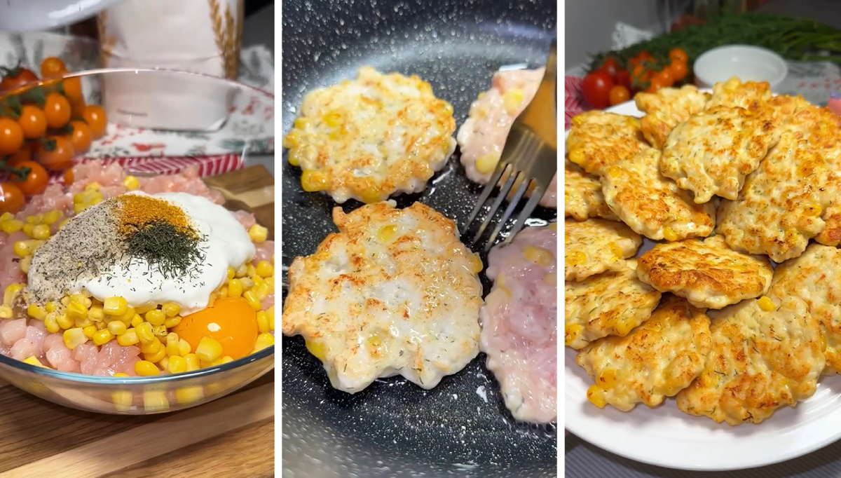 Котлетами, конечно, удивить трудно.Но я все-таки попробую!В этой статье я поделюсь с вами рецептами куриных котлет, которые я очень часто готовлю. Куриное филе 500 грамм Кукуруза консервированная 100 грамм Яйцо 1 штука Сметана 3 столовые ложки Специи по вкусу (соль, приправа для курицы, сушеный укроп) Куриное филе нарезаем мелким кубиком.Удобнее делать это, если курица будет немного подморожена. В миску кладем куриное филе, добавляем яйцо, кукурузу, сметану, муку и специи.Всё перемешиваем и даем постоять 20 минут. Котлеты выкладываем на сковороду ложкой.Жарим на подсолнечном масле, с двух сторон до румяной корочки. В конце можно оставить котлетки под крышкой, немного пропариться. Куриное филе 500 грамм Лук репчатый 1 штука Яйцо 1 штука Сухари панировочные 3 столовые ложки +для панировки Специи по вкусу (соль, перец и приправа для курицы) Сливочное масло 30 грамм Куриное филе и лук пропускаем через мясорубку. К фаршу добавляем панировочные сухари, специи и яйцо.Перемешиваем и оставляем